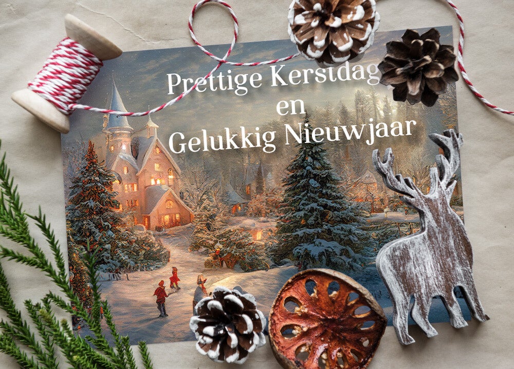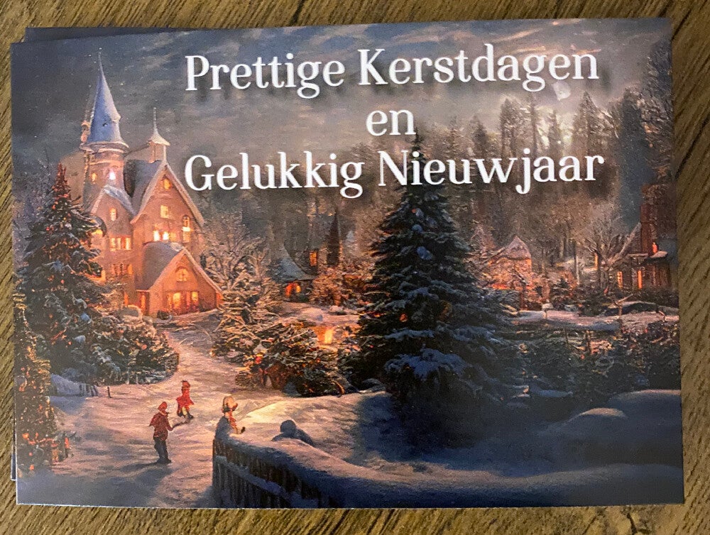 Dubbele Kerstkaart vintage met boom en met witte envelop.De buitenkant van de kaart is mat, de binnenkant is beschrijfbaar.Formaat 148 x 105 mm.